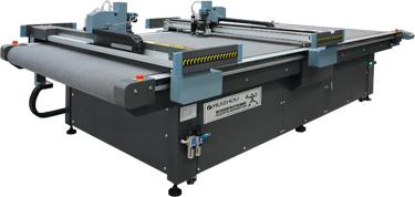 在瑞洲科技的展位現(xiàn)場(chǎng),RZCRT5-1813智能數(shù)控切割機(jī),其自首發(fā)之日起,全球總銷(xiāo)量已達(dá)數(shù)千臺(tái),經(jīng)市場(chǎng)多年驗(yàn)證,性能穩(wěn)定、表現(xiàn)卓越,深受?chē)?guó)內(nèi)外用戶(hù)青睞; 集智能、高效于一體的智能數(shù)控切割機(jī)的,可實(shí)現(xiàn)畫(huà)線(xiàn)、繪圖文字標(biāo)注、壓痕、半刀切割、全刀切割一次性完成,切割速度高達(dá)1500m/s,振動(dòng)刀轉(zhuǎn)速高達(dá)18000轉(zhuǎn)。同時(shí)標(biāo)配進(jìn)口直線(xiàn)導(dǎo)軌,傳動(dòng)系統(tǒng)采用進(jìn)口直線(xiàn)導(dǎo)軌、齒條、同步帶,切割精度完全達(dá)到往返原點(diǎn)零誤差。